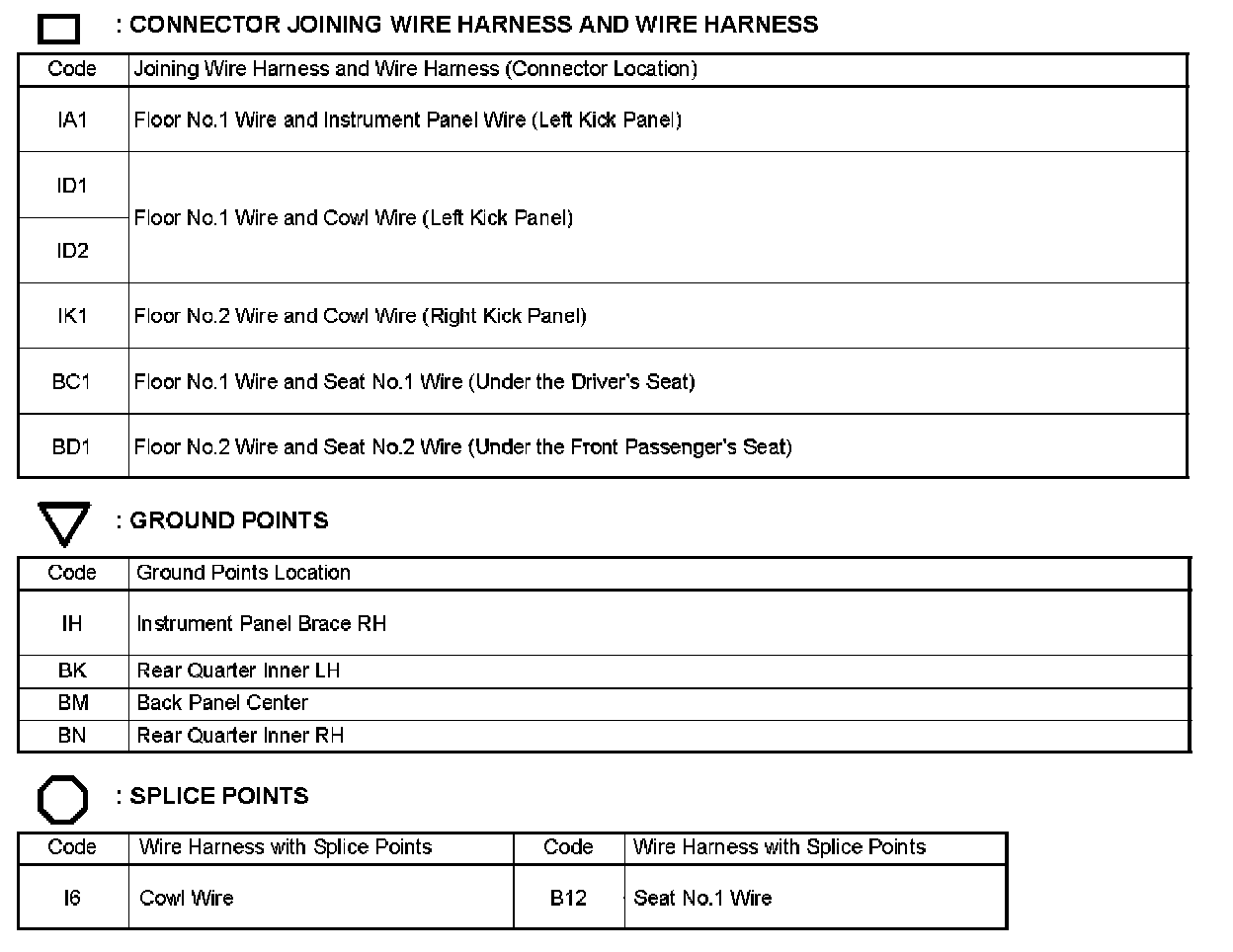 Locations: The locations of components, connectors, ground points, and splices referred to within these diagrams can be found at Vehicle Locations. Locations