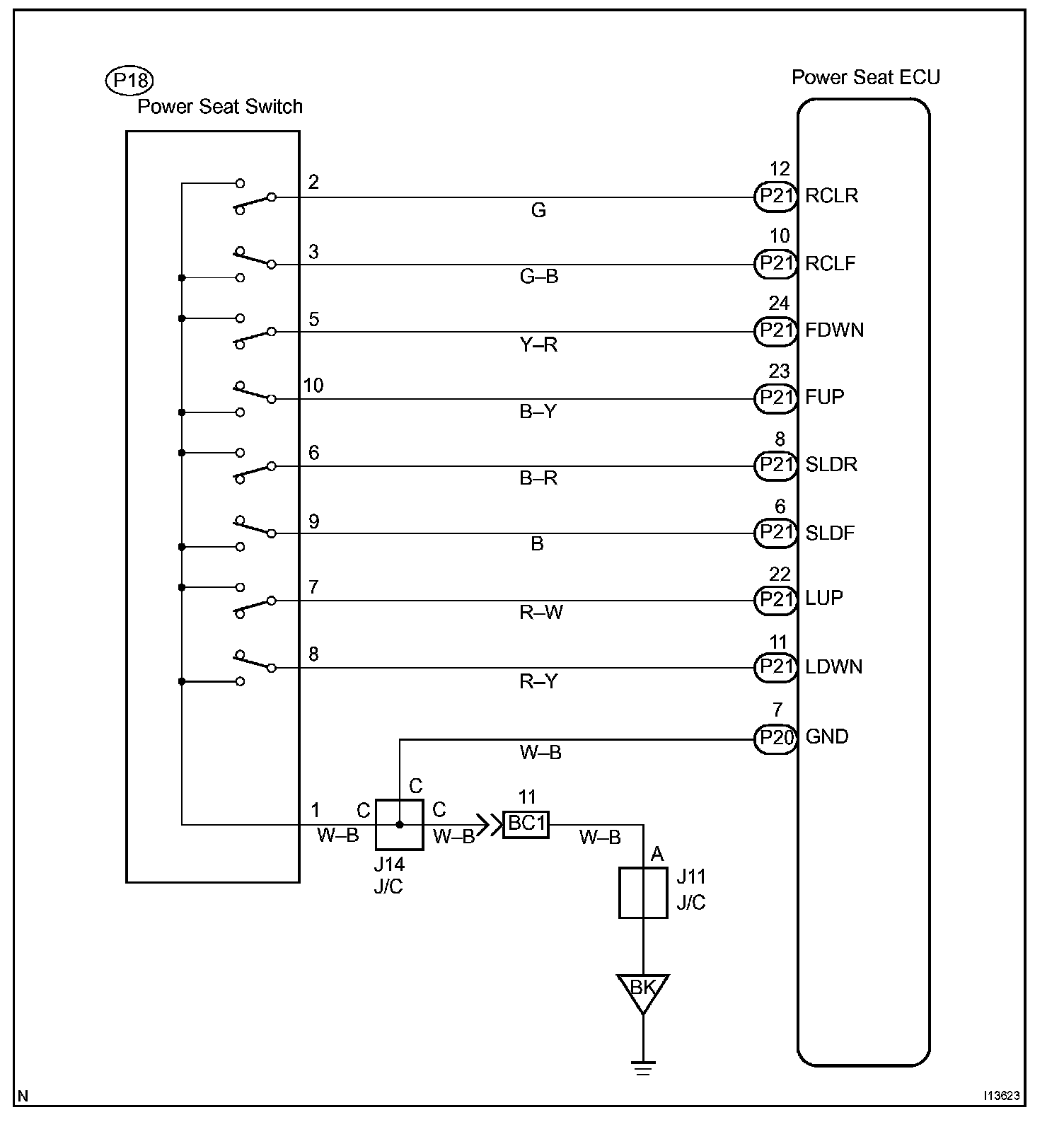 Power Seat Control Switch Circuit