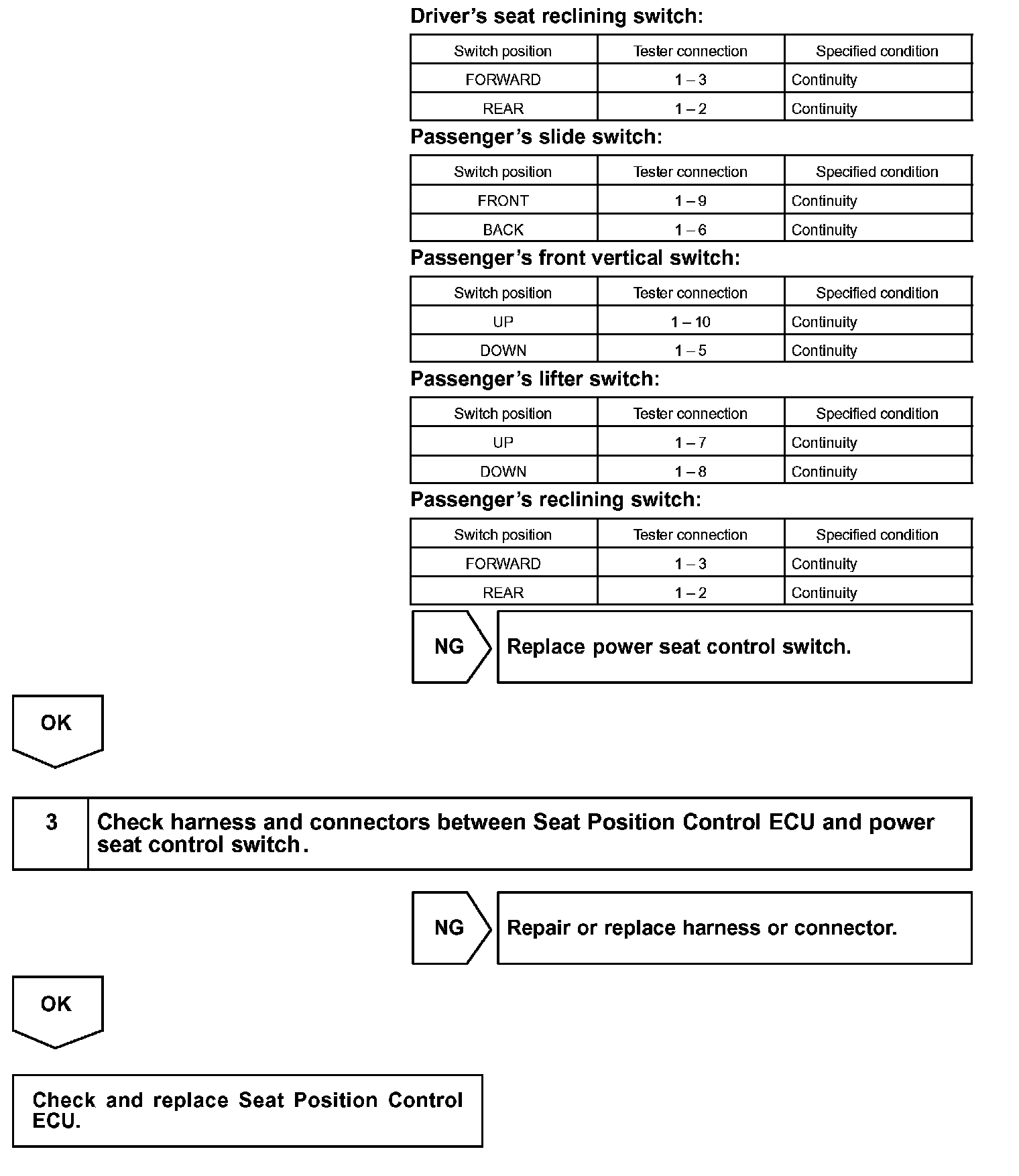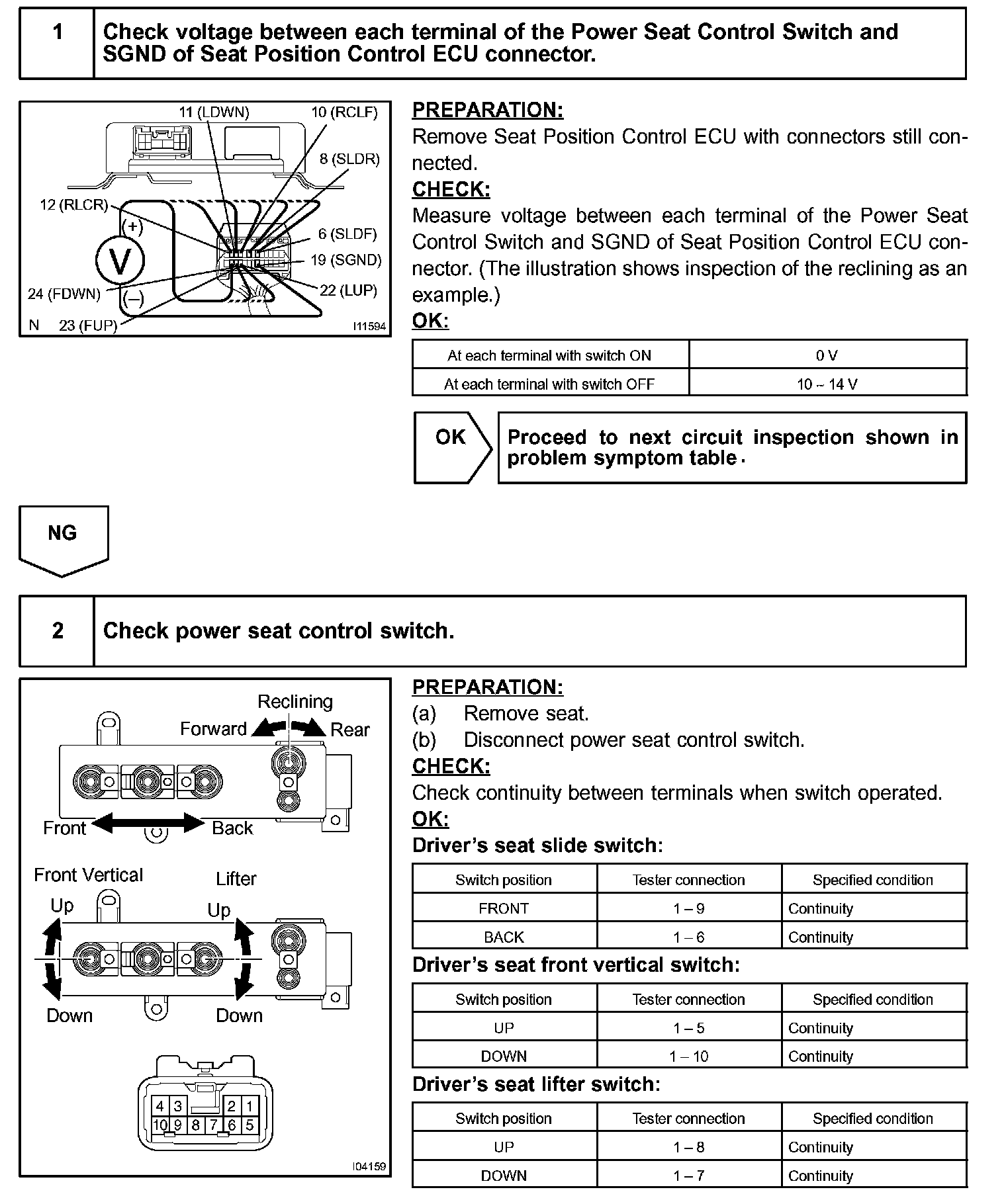 CIRCUIT DESCRIPTIONWhen the power seat control switch is operated, a signal is sent from the power seat control switch to the ECU and the ECU sends a signal to the motor to make it operate.