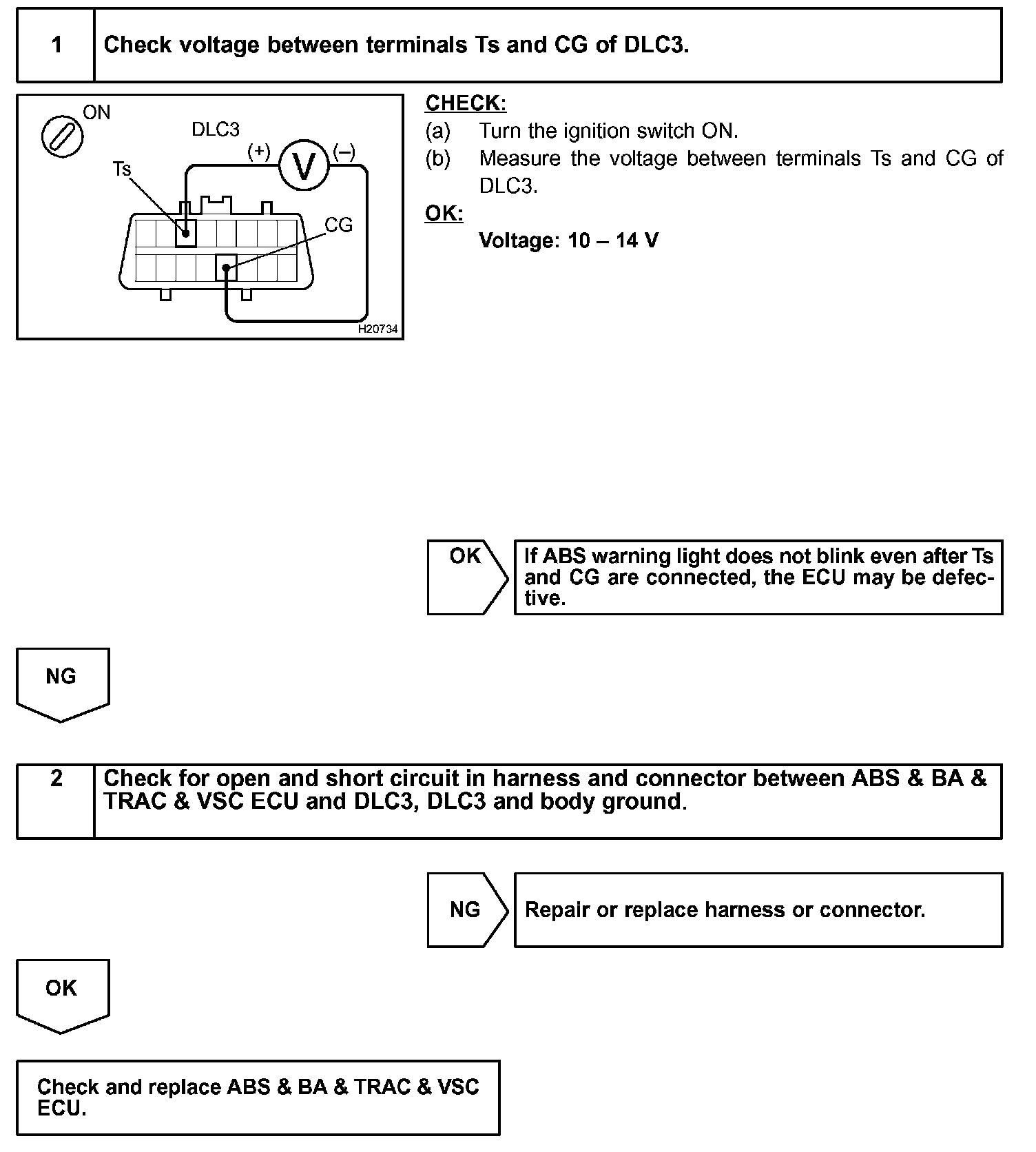 Connecting terminals Ts and CG of the DLC3 starts the check.