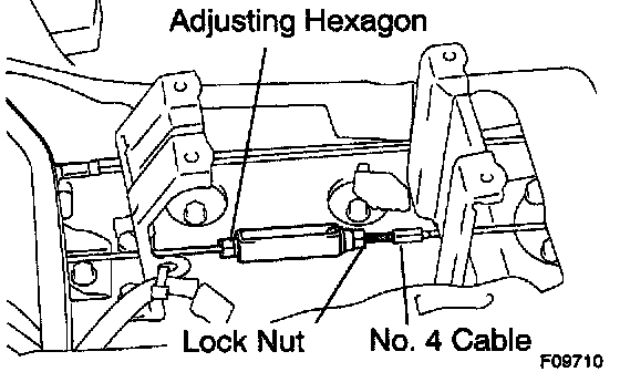 f. Hold the parking brake cable and turn the adjusting hexagon until the pedal travel is correct.