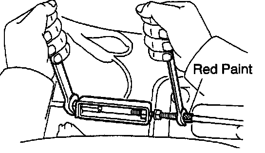 NOTICE: To prevent the parking brake cable from twisting, always keep the red-painted surface up.