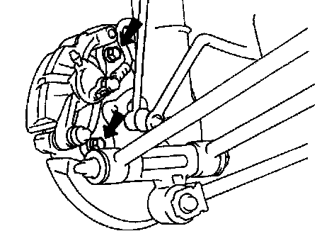 b. Suspend the disc brake securely. Ensure that the hose is not stretched.
