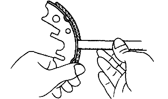 If the lining thickness is at the minimum thickness or less, or if there is severe, uneven wear, replace the brake shoe.