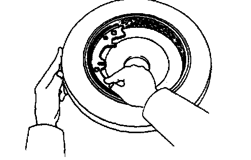 Apply chalk to the inside surface of the disc, then grind down the brake shoe lining to fit. If the contact between the disc and the brake shoe lining is improper, repair it using a brake shoe grinder or replace the brake shoe assembly.