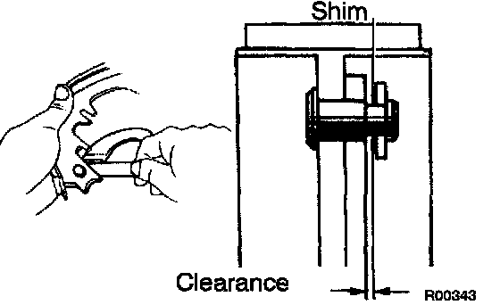 If the clearance is not within the specification, replace the shim with one of the correct size.