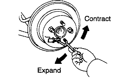 c. Turn the adjuster and expand the shoes until the disc locks.