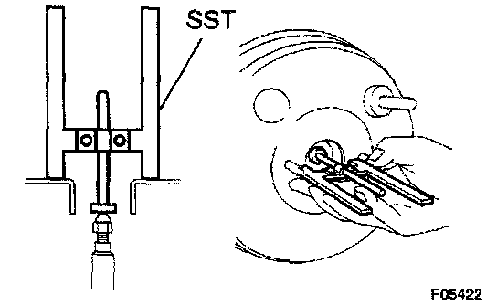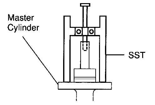 a. Set the SST on the master cylinder, and lower the pin until its tip slightly touches the piston.