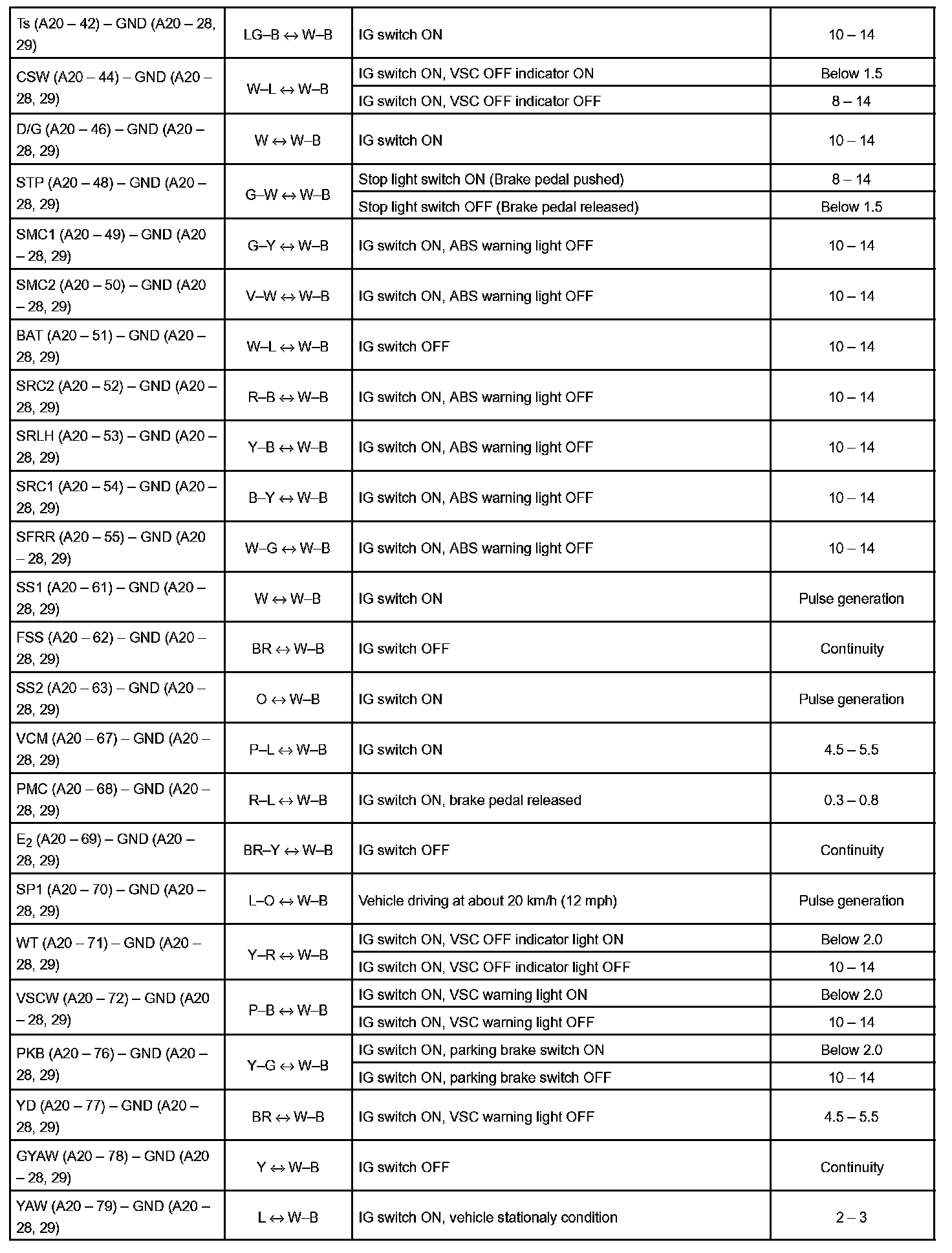 Terminals Of ECU/Pinouts - ABS & BA & TRAC & VSC ECU Part 2: