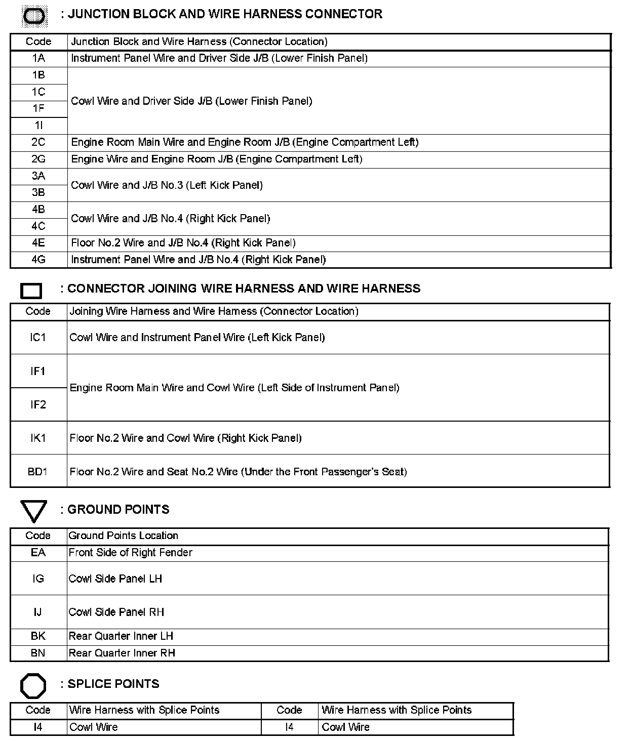 Locations: The locations of components, connectors, ground points, and splices referred to within these diagrams can be found at Vehicle Locations. Locations