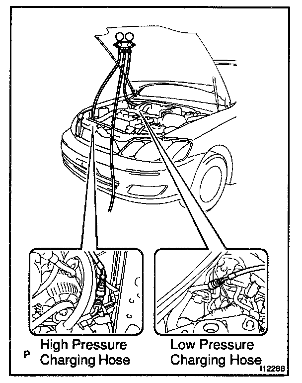 SET ON1. CONNECT CHARGE HOSE TO MANIFOLD GAUGE SET