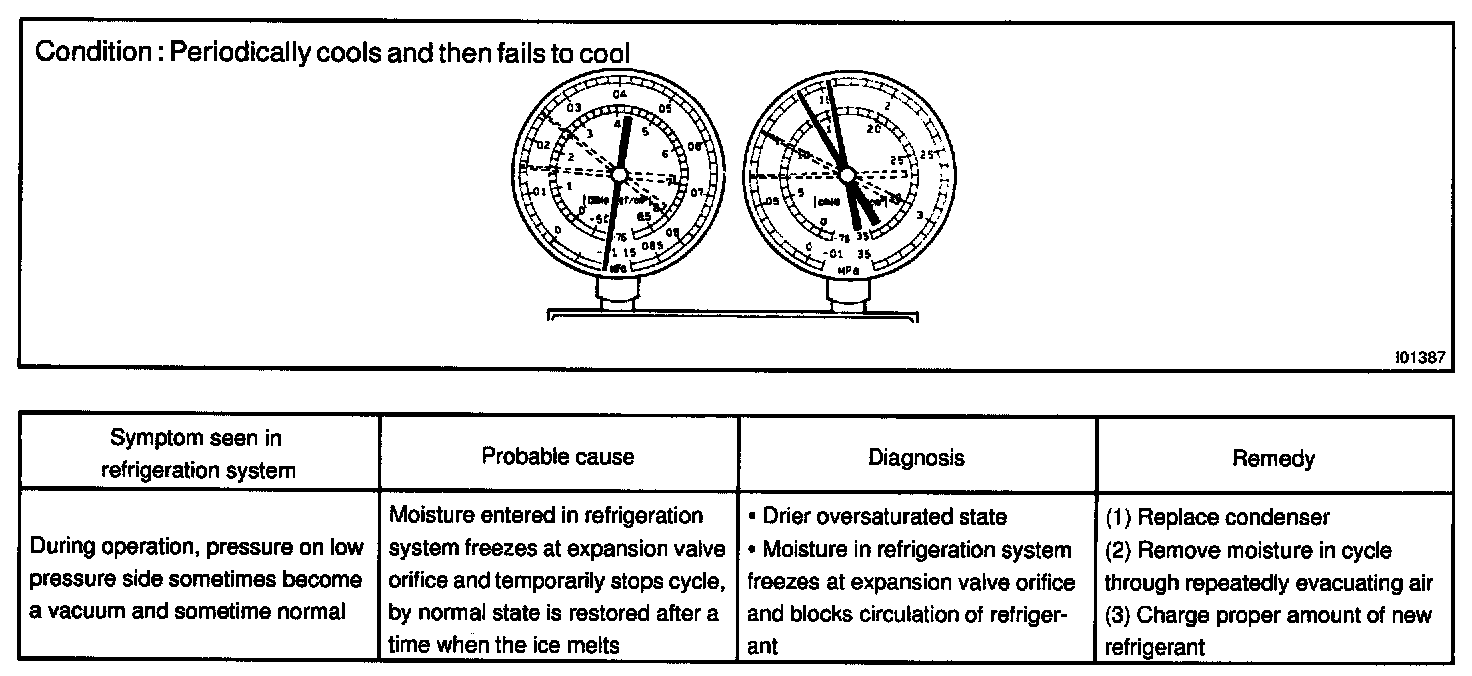 This is a method in witch the trouble is located by using a manifold gauge set. Read the manifold gauge pressure when the these conditions are established.