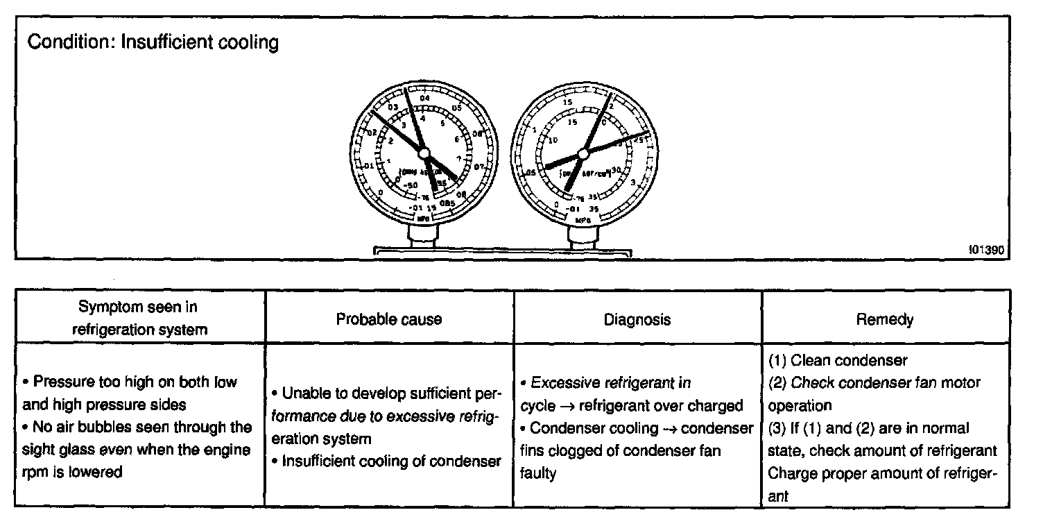 6. Refrigerant overcharged or insufficient cooling of condenser