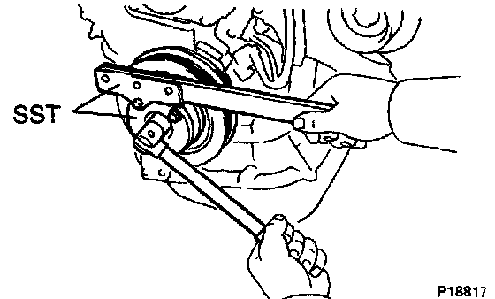 a. Using SST, remove the pulley bolt.