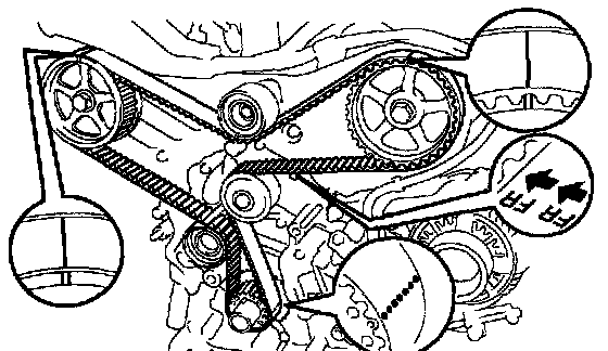 ^ Do not allow the timing belt to come into contact with oil, water or steam.