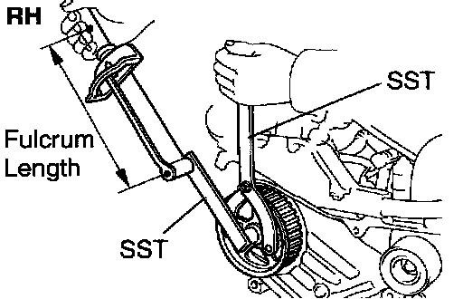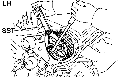 b. Using SST, remove the LH timing pulley.