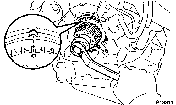 2. Turn the crankshaft, and align the timing marks of the crankshaft timing pulley and oil pump body.