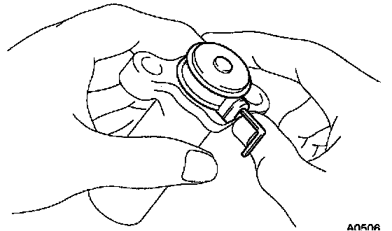 b. Hold the tensioner with both hands and push the push rod strongly as shown to check that it doesn't move.