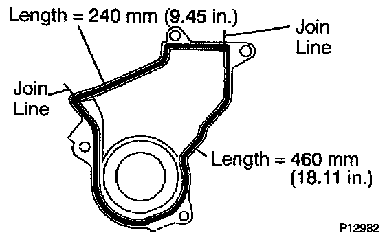 NOTICE: When joining 2 gaskets, do not leave a gap between them. Cut off any excess gasket. After installing the gasket, press down on it so that the adhesive firmly sticks to the timing belt cover.