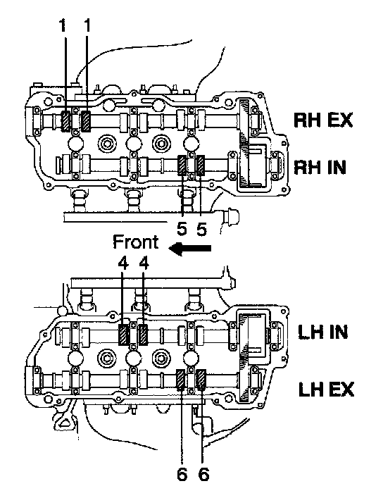 2. Record out of specification valve clearance measurements. They will be used later to determine the required replacement adjusting shim.