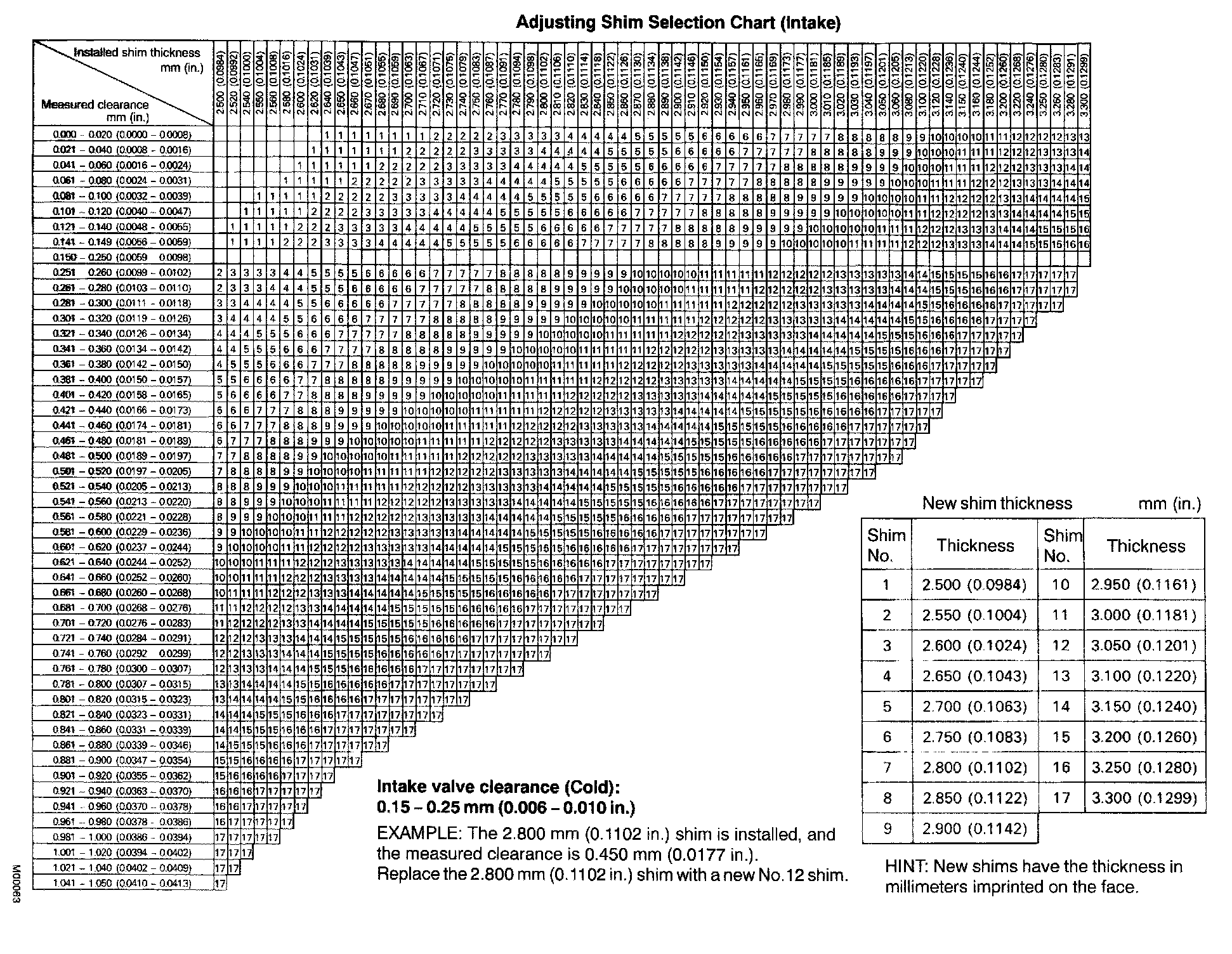 Adjusting Shim Selection Chart (Intake)