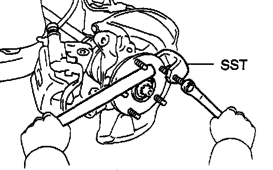 Using SST and a hammer handle or an equivalent, remove the hub bolt.