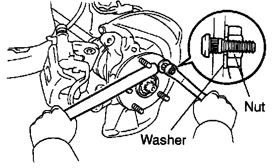 a. Install a washer and nut to a new hub bolt, as shown in the illustration.