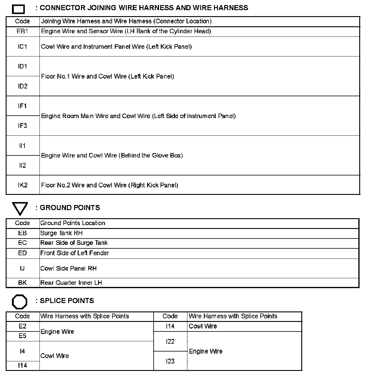 Locations: The locations of components, connectors, ground points, and splices referred to within these diagrams can be found at Vehicle Locations. Locations