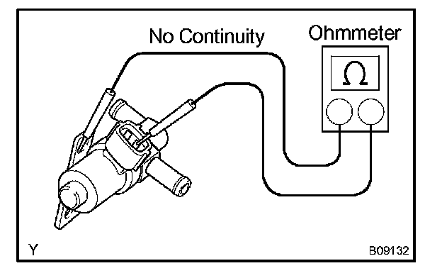 Using an ohmmeter, check that there is no continuity between each terminal and the body. If there is continuity, replace the VSV.