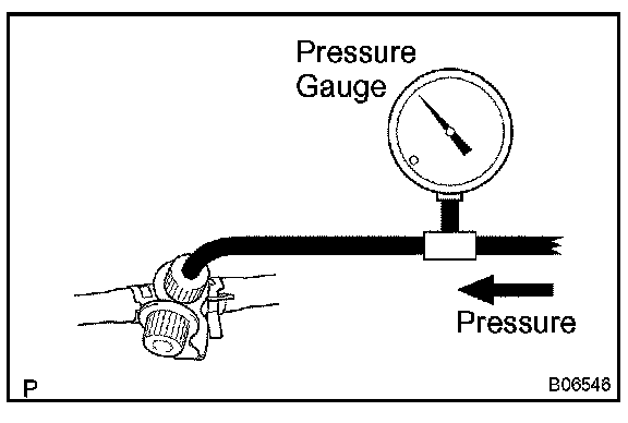 a. Disconnect the EVAP line hose from the charcoal canister side and then pressurize and make the internal pressure in the fuel tank 4 kPa (41 gf/sq cm, 0.58 psi).