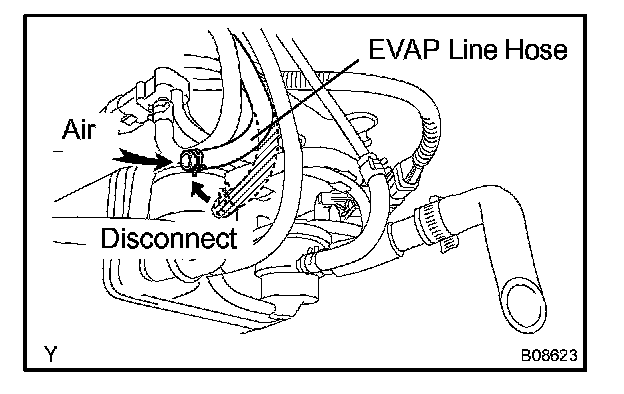e. Reconnect the EVAP line hose to the charcoal canister.