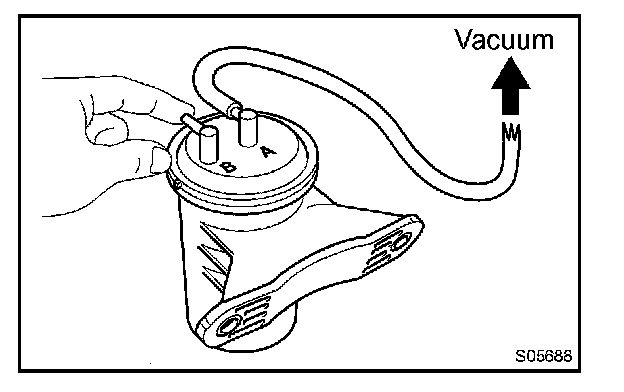 b. One minute after applying the vacuum in (a), check that the actuator rod does not return. If the operation is not as specified, replace the intake air control valve.