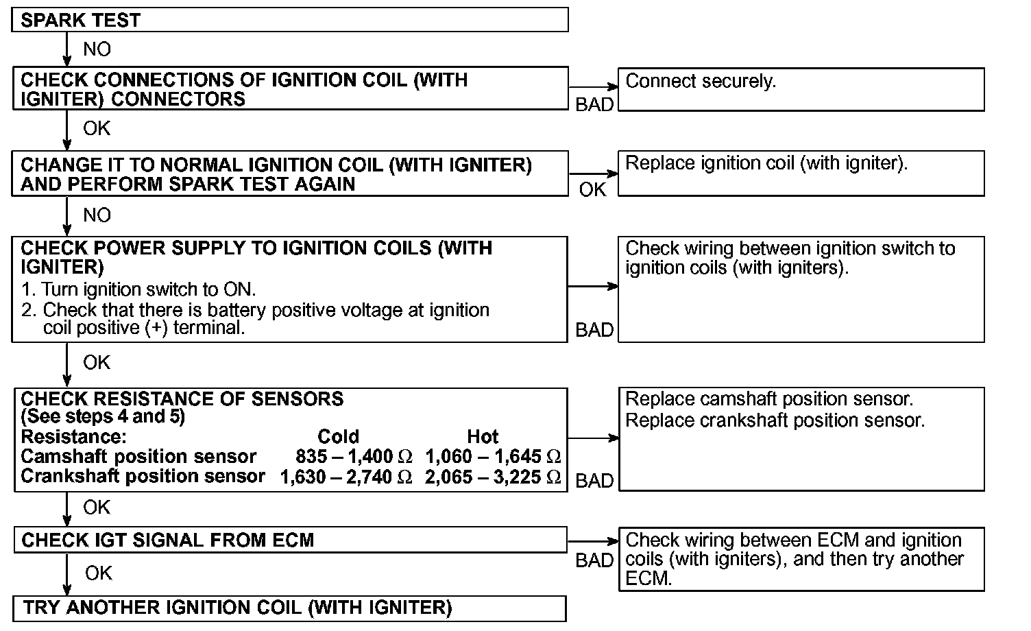 If the spark does not occur, do the test as given.