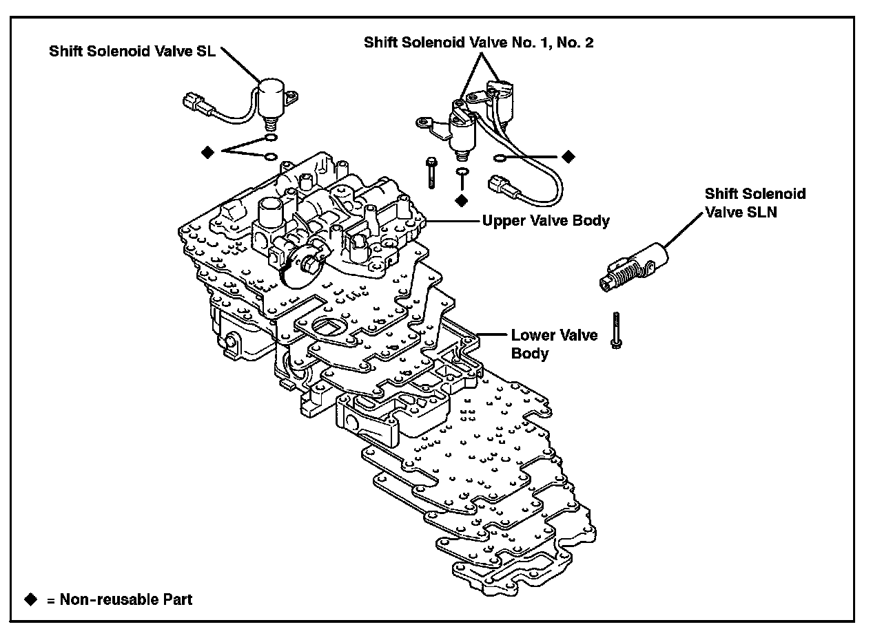 This service bulletin provides information on the proper identification of the 4 solenoids used in the A541E transmission.