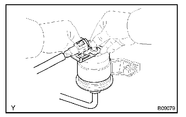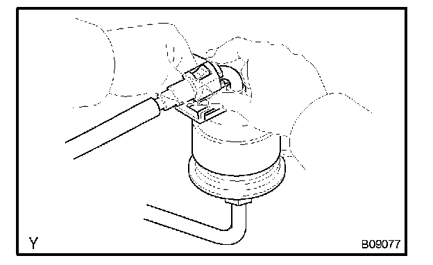 e. Disconnect the No.1 fuel pipe (fuel tube connector) from the fuel filter outlet.