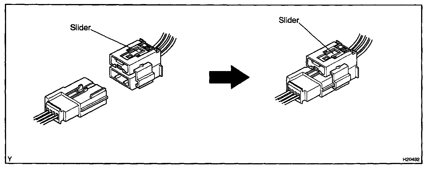 a. Align a lock part of male connector and a slider of female connector in the same direction as shown in the illustration, fit in them without rubbing.