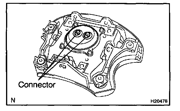 b. Remove the connector on the rear surface of the steering wheel pad from the bracket.