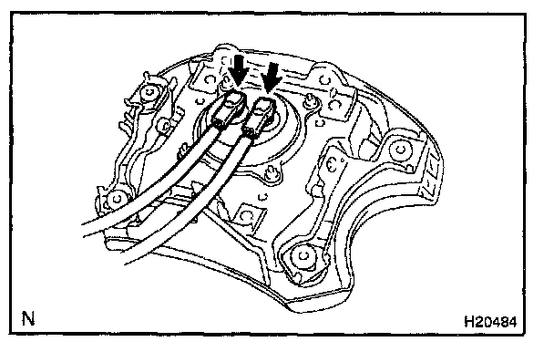 - Make sure that the wire harness is tight. It is very dangerous when looseness in the wire harness results in the steering wheel pad coming free due to the shock from the airbag deploying.
