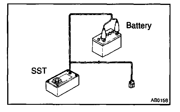 1. Connect the SST red clip to the battery positive (+) terminal and the black clip to the battery negative (-) terminal.