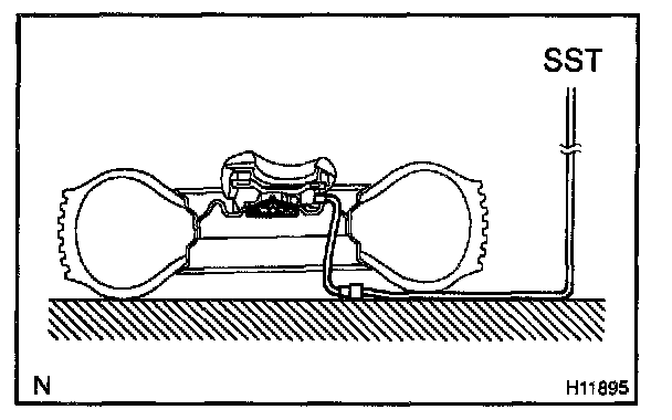 NOTE: To avoid damaging the SST connector and wire harness, do not lock the secondary lock of the twin lock. Also, secure some slack for the SST wire harness inside the disc wheel.