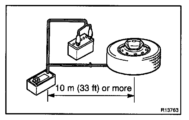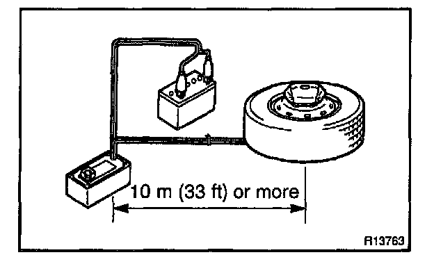 2. Move the SST to at least 10 m (33 ft) away from the steering wheel pad tied down on the disc wheel.