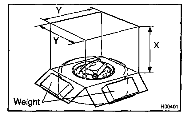 - When dimension V of the cardboard box exceeds the diameter of the disc wheel with tire to which the steering wheel pad is tied, X should be the following size.