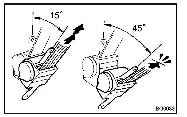 d. Make sure that the belt can be pulled out at a tilt of 15 degrees or less, and cannot be pulled out over 45 degrees of tilt.