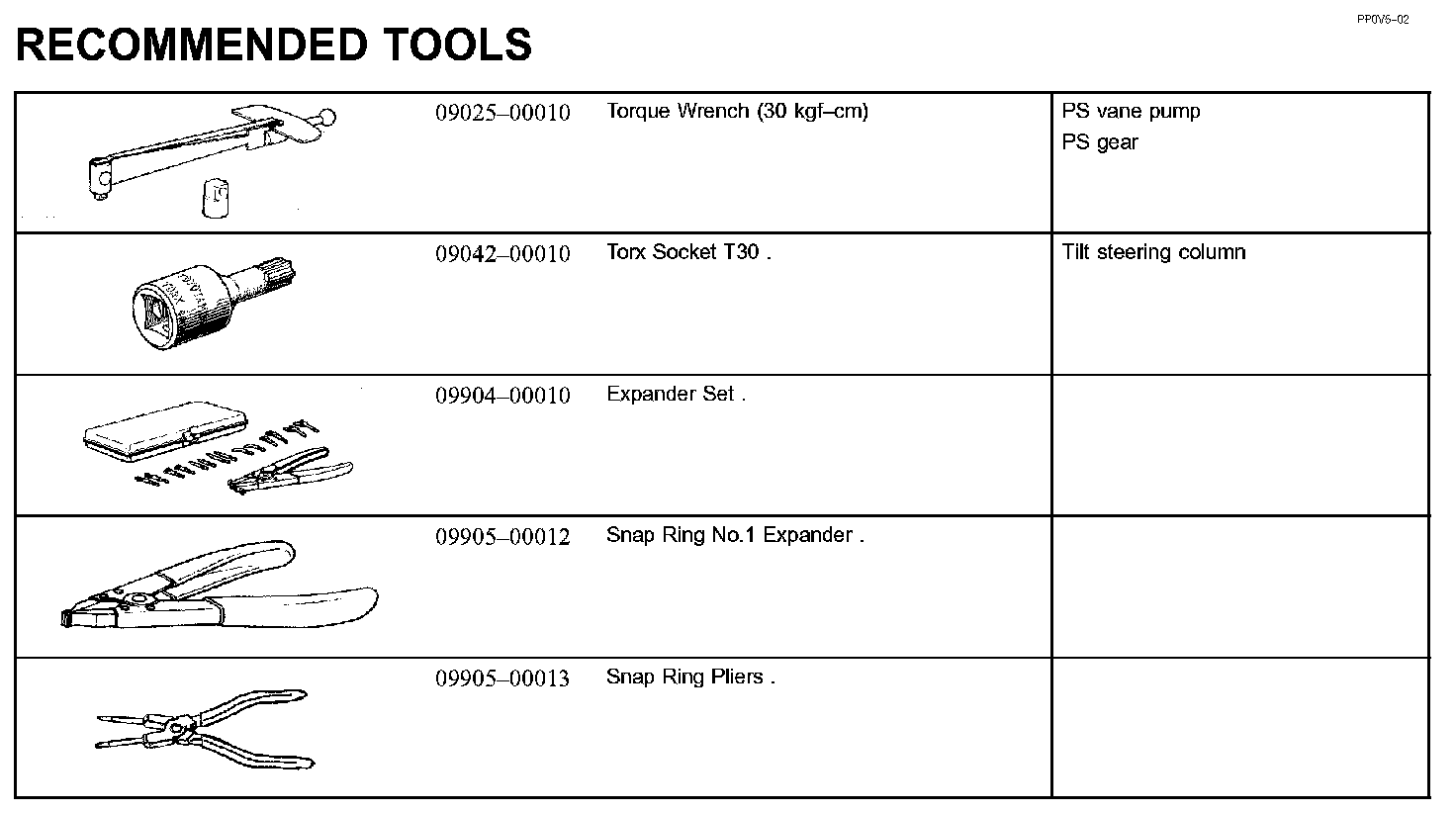 Steering - Recommended Tools: