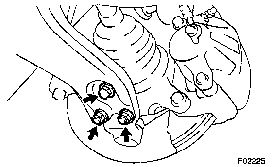 Remove the 2 nuts and bolt, and disconnect the lower suspension arm from the lower ball joint.