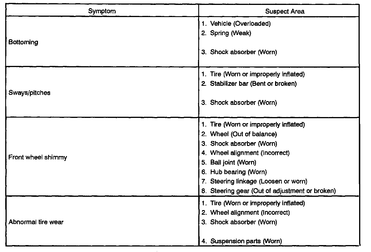 PROBLEM SYMPTOMS TABLE
