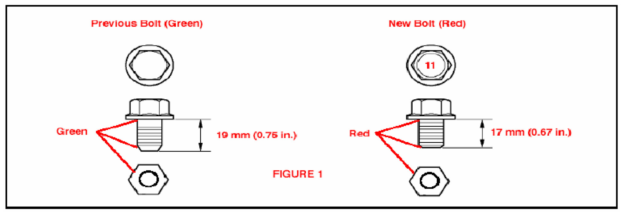Refer to the figure 1 for shape and colour information of the previous bolt and the new bolt. Carefully note that the previous bolt is green and the new bolt is red.