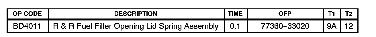 Under certain conditions the fuel door may require a high effort to open. The fuel filler opening lid spring assembly has been modified to improve this condition.