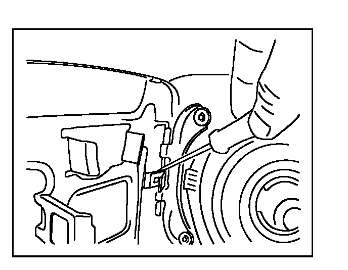 B. Using a taped screwdriver, release the inner portion of the spring from the fuel door hinge.