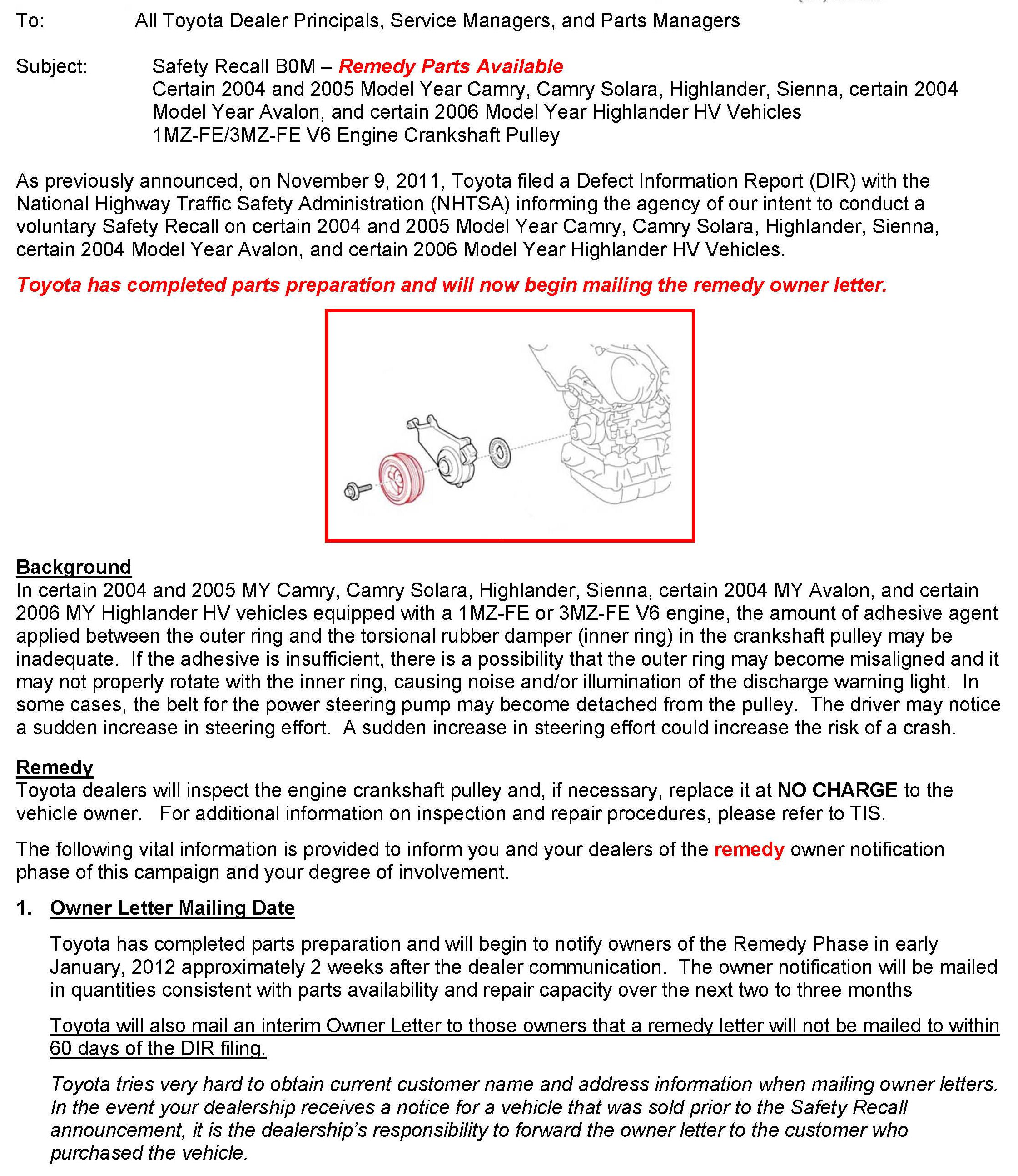 Recall - Crankshaft Balancer/Pulley Replacement